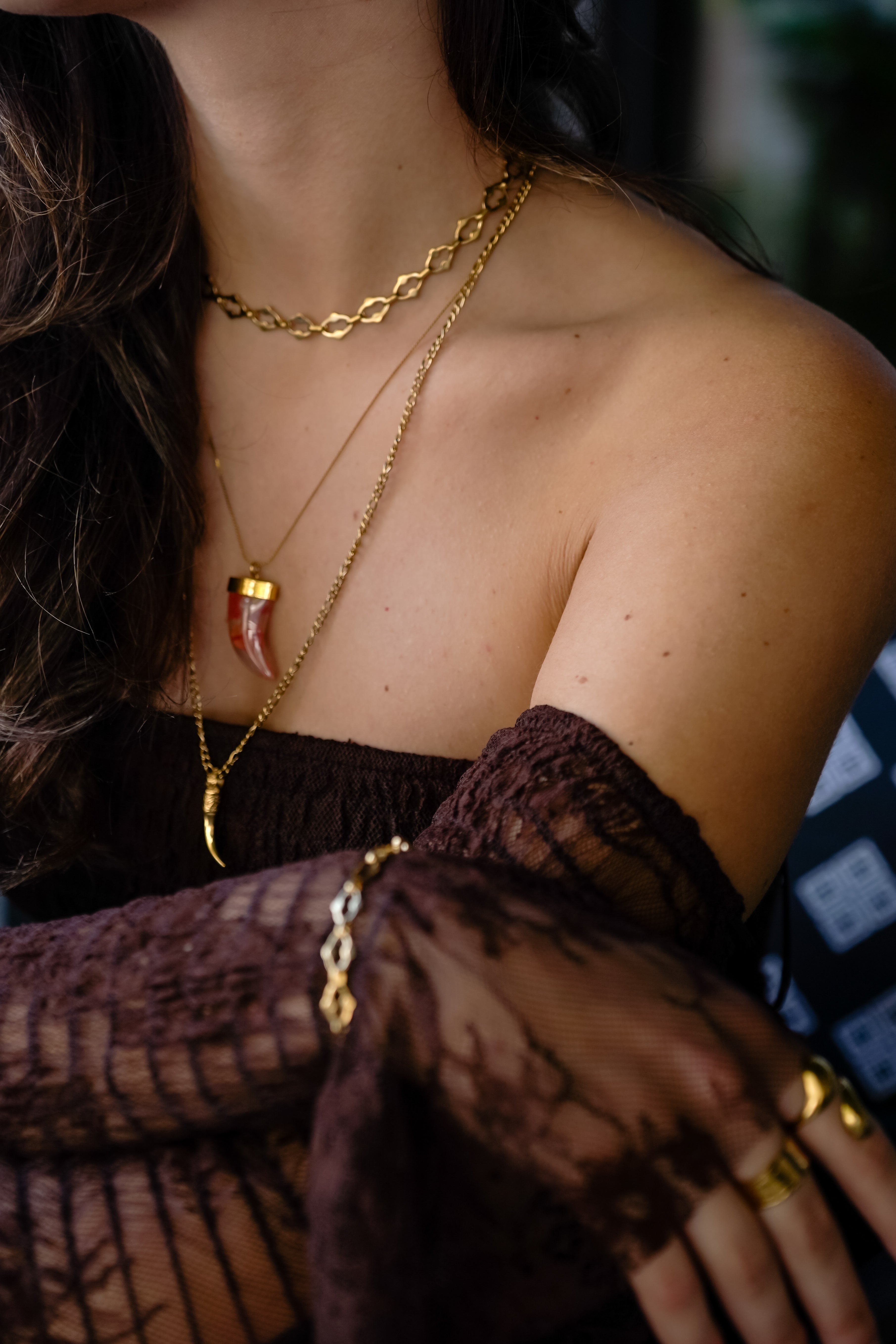 GIROCOLLO PERLE ROSSE CON CORNO